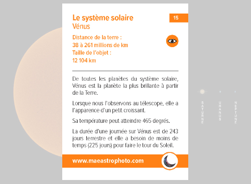 Pourquoi vous arrêter à une seule carte ? Complétez la collection et explorez les mystères du cosmos, pièce par pièce. Chaque carte est soigneusement conçue avec un fini de qualité supérieure ou vous pourrez observer les beautés de l’univers capturées par M. Stéphane Simard astrophotographe et animateur de l’émission Chasseurs d’étoiles. Vous retrouverez à l’endos de chacune des cartes des informations pertinentes et éducatives vous permettant d’en apprendre davantage sur les objets d’astronomie qui ont été capturés.